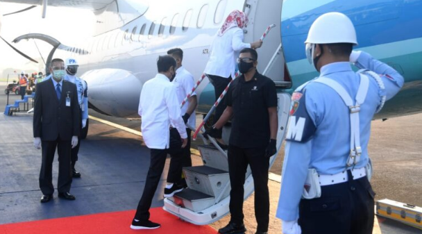 Presiden beserta romobongannya lepas landas dari Pangkalan TNI AU Halim Perdanakusuma, Jakarta sekitar pukul 07.00 WIB dengan menggunakan pesawat khusus ATR 72-600.