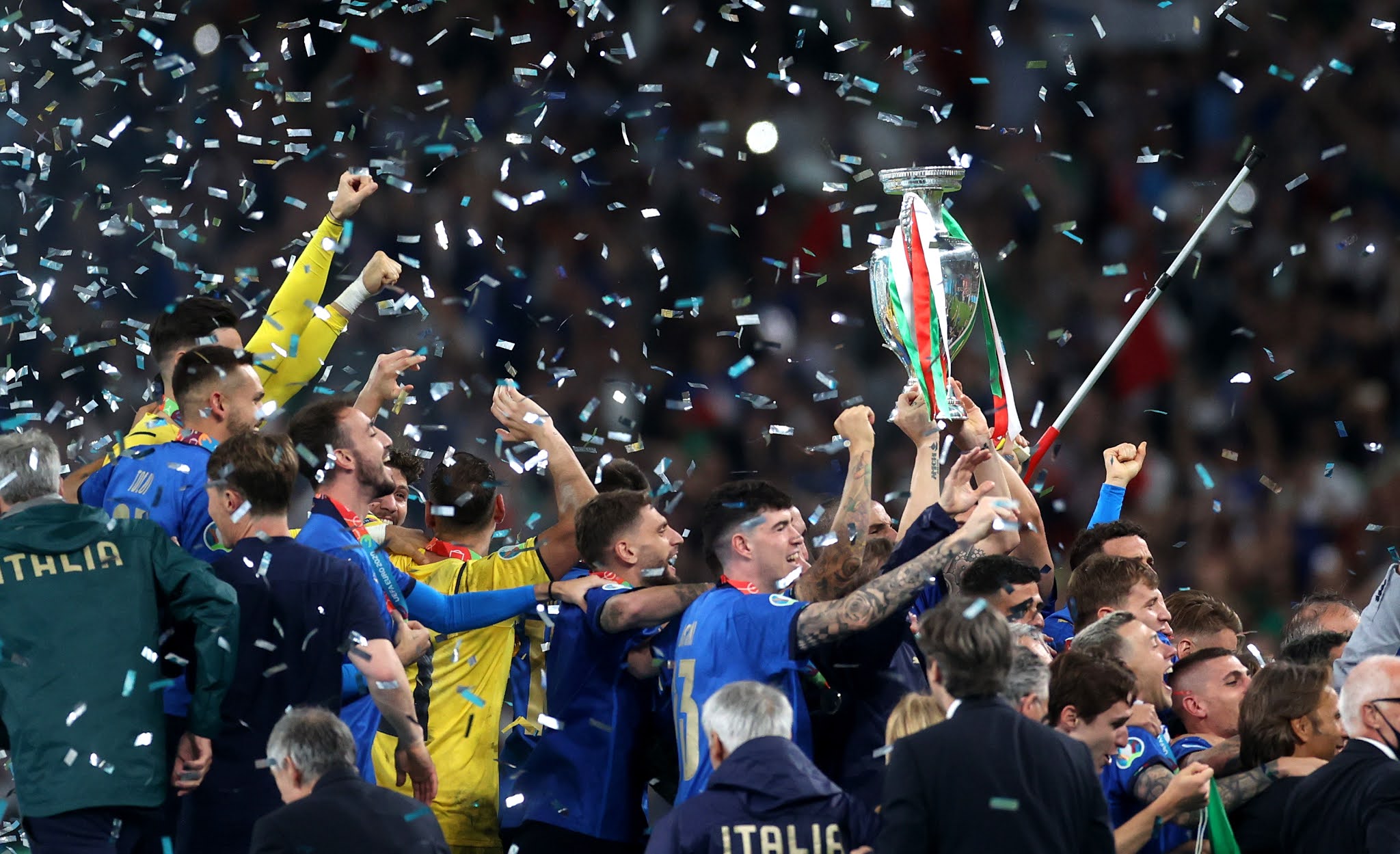 Gli Azzuri berhasil meraih gelar kedua mereka lewat drama adu pinalti atas tuan rumah Inggris. Perdebatan slogan “it’s coming home” dengan “it’s coming to rome” berakhir dengan piala “it’s coming to rome”.
