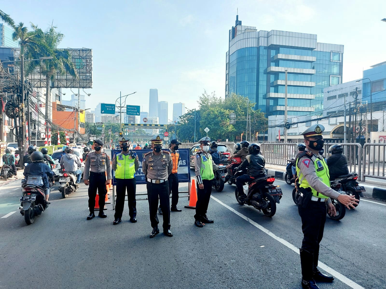 Dalam pemantauan di akun Twitter @TMCPoldaMetroJaya sejumlah personel Rabu pagi ini (1/9/2021) tindak penilangan di Bundaran Senayan, Jalan Casabalanka, Jalan Rasuna Said-Kuningan, dan di Underpass Mampang Prapatan Jakarta Selatan.